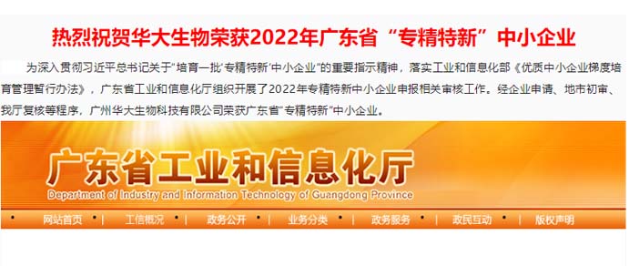 喜報(bào)丨祝賀華大生物榮獲廣東省“專(zhuān)精特新”中小企業(yè)和廣州市“專(zhuān)精特新”扶優(yōu)計(jì)劃培育企業(yè)